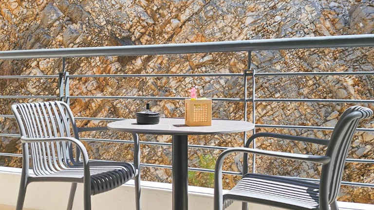 Die Studios sind modern ausgestattet und verfügen über einen Balkon mit Bergblick, einen gemütlichen Sitzbereich und einen Flachbild-TV. Eine voll ausgestattete Küche mit Kühlschrank, Herdplatte, Toaster und Wasserkocher ist ebenfalls vorhanden. Zudem gibt es ein eigenes Badezimmer mit Bidet und Haartrockner.