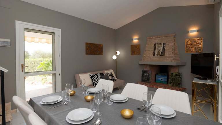 Die klimatisierte Villa umfasst 2 Schlafzimmer, ein Wohnzimmer sowie eine voll ausgestattete Küche mit Kühlschrank und Kaffeemaschine. Es gibt 2 Badezimmer mit Bidet und Badewanne oder Dusche. Handtücher und Bettwäsche werden bereitgestellt.