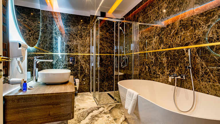Die klimatisierten Zimmer sind mit einem Schreibtisch, Wasserkocher, Minibar, Safe, Flachbild-TV und einem eigenen Badezimmer mit Dusche ausgestattet. Zusätzlich verfügen die Zimmer über einen Kleiderschrank.