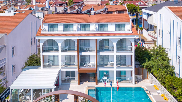 Das Princess Kinli Suites Hotel befindet sich in Marmaris, lediglich 800 Meter vom öffentlichen Strand entfernt. Zudem liegt der Yachthafen von Marmaris 12 Kilometer entfernt. In der Umgebung finden sich interessante Sehenswürdigkeiten wie das Marmaris Amphitheatre, der Wasserpark Atlantis Su Parki und der Wasserpark Aqua Dream.