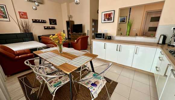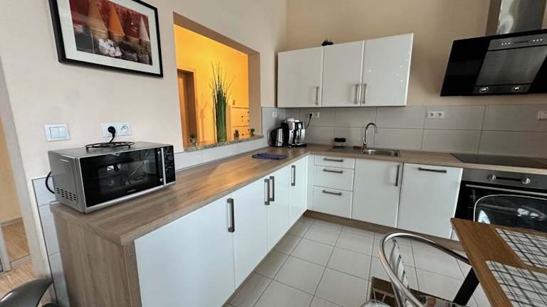 Die Ferienwohnung verfügt über ein Schlafzimmer, ein Wohnzimmer, eine voll ausgestattete Küche mit Kühlschrank und Wasserkocher sowie ein Badezimmer mit Dusche und kostenlosen Pflegeprodukten. Handtücher und Bettwäsche werden bereitgestellt. Das Apartment umfasst allergikerfreundliche Zimmer und ist schallisoliert.