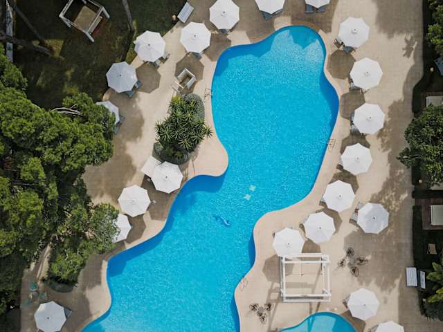 Ausstattung: 351 Wohneinheiten (Doppelzimmer & Apartments), 8 Gebäude, alle mit Lift. Einige Gebäude sind durch eine kleine Straße vom Haupthaus getrennt. Im Hauptgebäude: Rezeption, Lounge Bar mit Sat.-TV, Snack-Pool Bar, Buffet Restaurants (Algar & El Patio), Spa Bereich (Hallenbad, Jacuzzi, Sauna), Fitnessraum, PC Raum, Reiseveranstalterraum. Weitläufige Gartenanlage mit großer Poollandschaft, möblierter Sonnenterrasse, großer Liegewiese und nette Pool- Snackbar mit Sitzterrasse. Badetuchservice gegen Kaution.