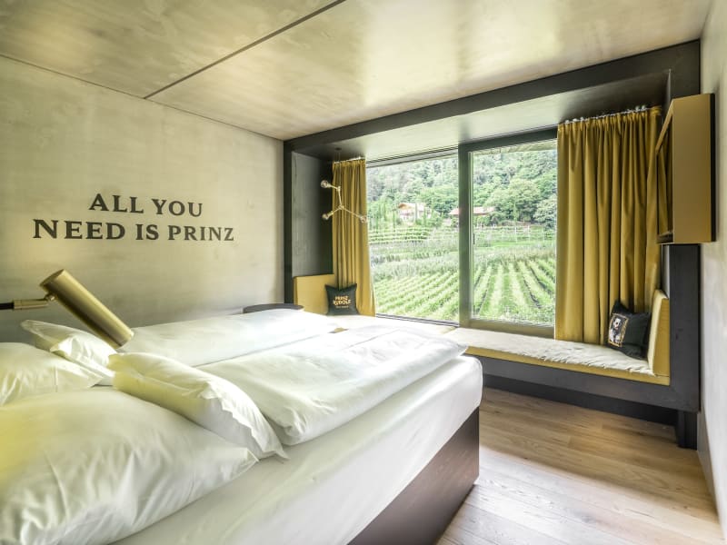 Die 83 Zimmer des Hotels sind modern und komfortabel eingerichtet. Viele Zimmer verfügen über einen Balkon mit Panoramablick und bieten Annehmlichkeiten wie WLAN, Flatscreen-TV, Safe und Minibar. Die Doppelzimmer Prinz Nido und Prinz Garden sind ca. 30 m² groß und bieten Platz für bis zu zwei Personen.