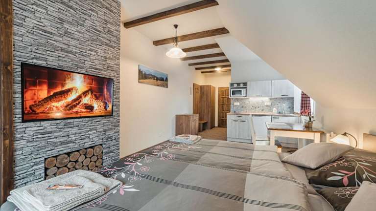 Die Unterkunft Privat LeNa befindet sich in Ružomberok, 29 km von Arwaburg und 33 km von Aquapark Tatralandia entfernt. Die Umgebung bietet zahlreiche Freizeitmöglichkeiten wie Skifahren und Velofahren. Der nächste Wasserpark liegt 16 km entfernt. Das Dorf Vlkolinec ist 15 km weit weg, und der Flughafen Poprad-Tatry ist 80 km von der Unterkunft entfernt.