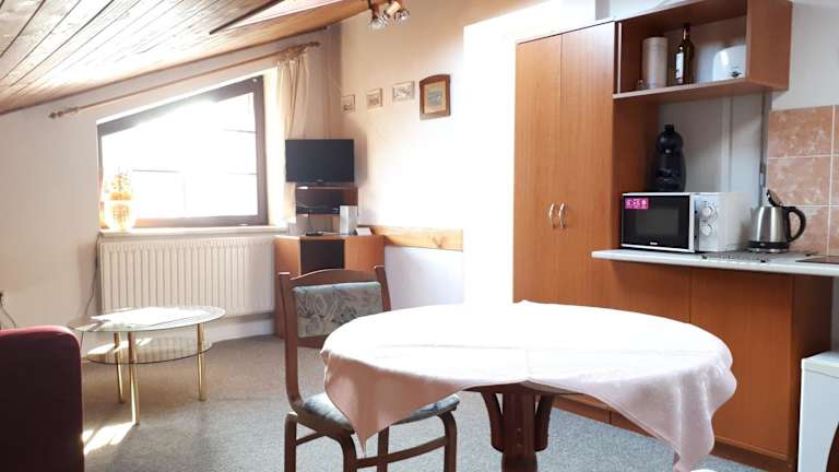 Die Unterkunft Privát - Melanie bietet eine heimelige Atmosphäre mit kostenlosem Wifi, Grillmöglichkeiten und einem Garten. Zudem stehen den Gästen kostenlose Parkiermöglichkeiten zur Verfügung. Die Terrasse lädt zum Entspannen ein, und eine Gemeinschaftslounge ist ebenfalls vorhanden.