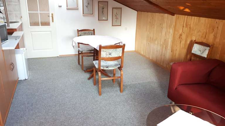 In der Unterkunft sind eine Küche mit Kühlschrank, Mikrowelle, Herdplatte und Kaffeemaschine vorhanden. Es gibt keine speziellen Verpflegungsmöglichkeiten, jedoch kann die Gemeinschaftsküche für die Eigenverpflegung genutzt werden.