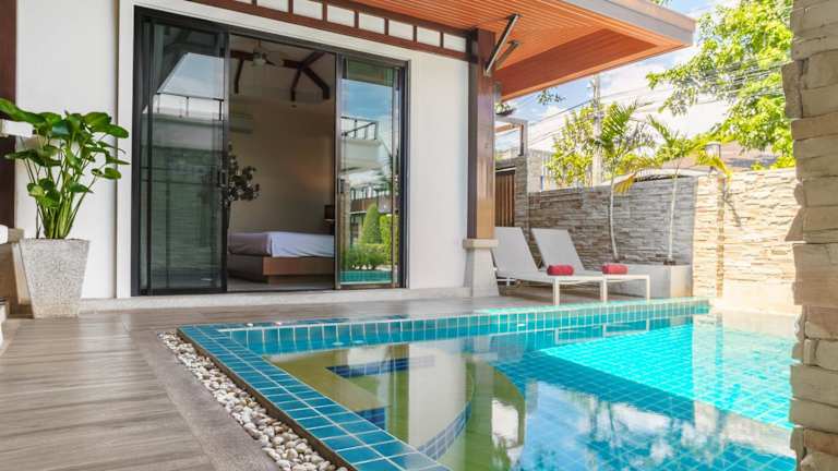 Die Private 2BR Pool Villa 2D16 in Gated Residences Rawai VIP Villas bietet Übernachtungsmöglichkeiten in einer modernen und klimatisierten Villa. Die Unterkunft umfasst eine Terrasse, einen Aussenpool sowie einen Conciergeservice, der den Gästen bei ihren Anliegen zur Seite steht. Kostenfreies WLAN ist ebenfalls vorhanden.