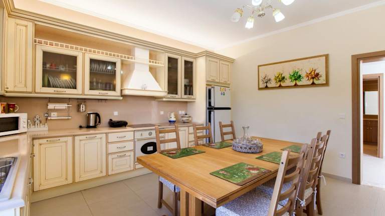 Die Villa mit Klimaanlage besteht aus 3 Schlafzimmern und einem Wohnzimmer. Eine voll ausgestattete Küche mit Kühlschrank und Kaffeemaschine sowie 2 Badezimmer mit Dusche und Whirlpool sorgen für Bequemlichkeit. Handtücher und Bettwäsche werden bereitgestellt.