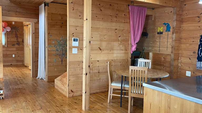 Private house LOG HOUSE 瀬戸市品野町 #AB1 bietet eine Ferienwohnung mit einer hochwertigen Ausstattung. Die Unterkunft umfasst zwei Schlafzimmer und einen Balkon, der Zugang zur Terrasse ermöglicht.