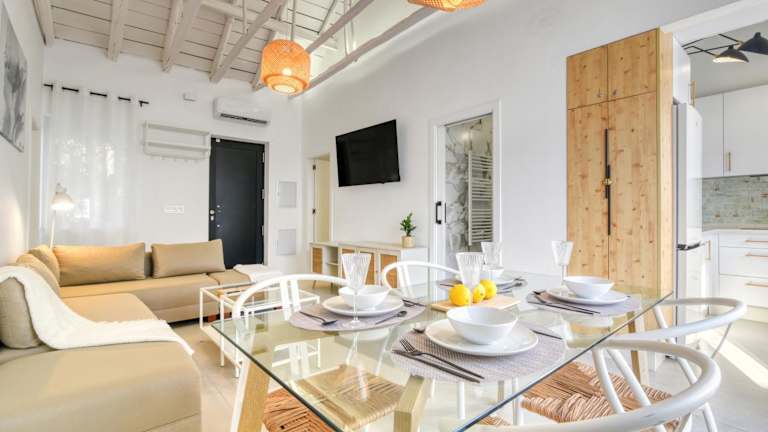 Das Ferienhaus ist klimatisiert und besteht aus zwei Schlafzimmern, einem Wohnzimmer, einer voll ausgestatteten Küche mit Kühlschrank und Kaffeemaschine sowie einem Badezimmer mit Dusche und kostenlosen Pflegeprodukten. Zur Ausstattung gehören zudem ein Flachbild-TV sowie verschiedene Annehmlichkeiten wie Nichtraucherzimmer, Familienzimmer, Gartenmöbel und eine Sonnenterrasse. Des Weiteren stehen Einrichtungen wie ein Brettspiele/Puzzle und ein Tauchbecken zur Verfügung.