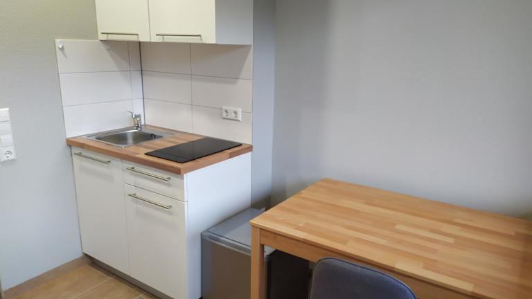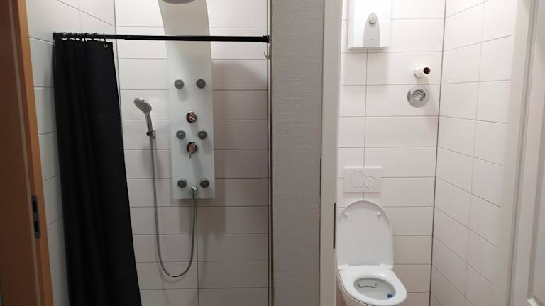 Das Mikroapartment umfasst ein Schlafzimmer sowie eine Küchenzeile mit einem Kühlschrank. Es gibt ein Badezimmer mit einer Dusche und einer Waschmaschine. Handtücher und Bettwäsche werden ebenfalls bereitgestellt.