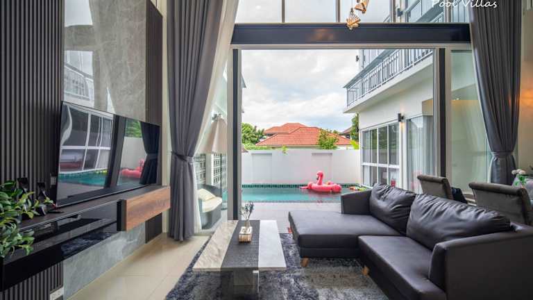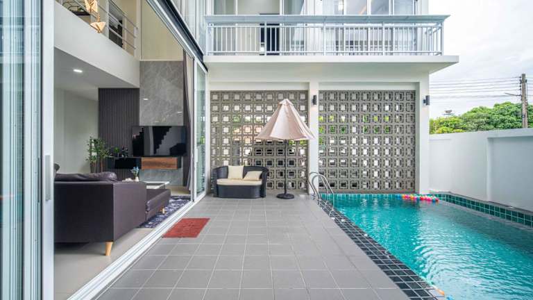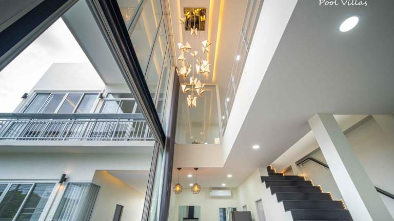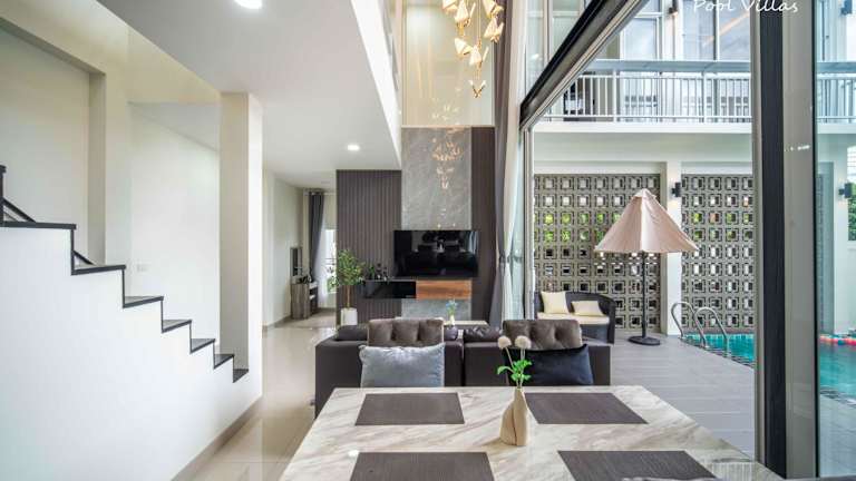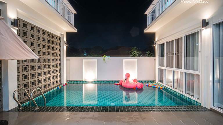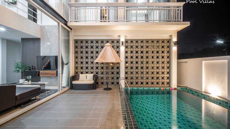 Die Private Pool Villa 5 Bedroom - La Lune Pool Villa Chiang Mai bietet Übernachtungsmöglichkeiten in einem stilvoll gestalteten Ferienhaus. Die Unterkunft verfügt über einen privaten Aussenpool, eine Gemeinschaftslounge und eine heimelige Terrasse. Gästen stehen kostenloses Wifi sowie ein kostenloser Privatparkplatz zur Verfügung. Eine Gemeinschaftsküche ist ebenfalls vorhanden, was eine praktische Selbstverpflegung ermöglicht.