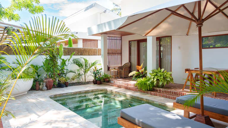 Die Private Pool Villa Retreat NAMU new one-bedroom 6unit bietet Übernachtungsmöglichkeiten in einem heimeligen Ambiente. Die Villa verfügt über eine eigene Terrasse mit Blick auf den Pool, die einen Rückzugsort für die Gäste darstellt.