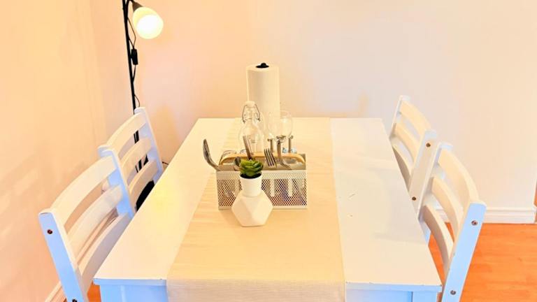 Die Unterkunft bietet ein Schlafzimmer sowie eine voll ausgestattete Küche mit Kühlschrank und Geschirrspüler. Ein Flachbild-TV und ein gemütlicher Sitzbereich sind ebenfalls vorhanden. Das Badezimmer ist mit einer Dusche ausgestattet. Handtücher und Bettwäsche werden zur Verfügung gestellt, um die Bequemlichkeit der Gäste zu erhöhen.