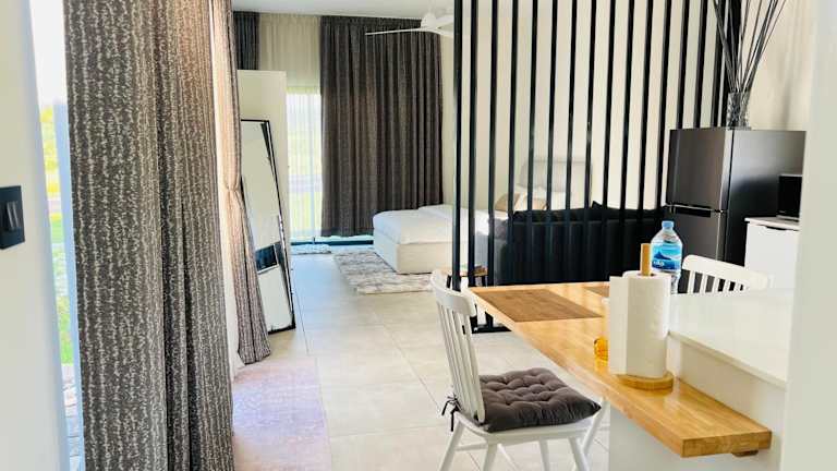 Die Villa verfügt über ein Schlafzimmer und ist mit einem Flachbild-TV sowie einer voll ausgestatteten Küche ausgestattet. Zu den Annehmlichkeiten gehören ein Kühlschrank und eine Mikrowelle. Handtücher und Bettwäsche werden bereitgestellt.
