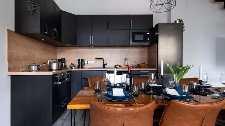 Die Ferienwohnung verfügt über 4 Schlafzimmer und eine voll ausgestattete Küche mit Kühlschrank und Geschirrspüler. Zudem gibt es 3 Badezimmer, die mit einer Dusche, einem Haartrockner und einer Waschmaschine versehen sind. Handtücher und Bettwäsche werden bereitgestellt.