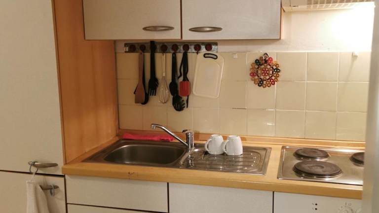 Die Ferienwohnung besteht aus einem Schlafzimmer, einem Wohnzimmer und einer voll ausgestatteten Küche mit Kühlschrank und Wasserkocher. Zudem beinhaltet sie ein Badezimmer mit einem Bidet und kostenlosen Pflegeprodukten. Handtücher und Bettwäsche werden zur Verfügung gestellt.