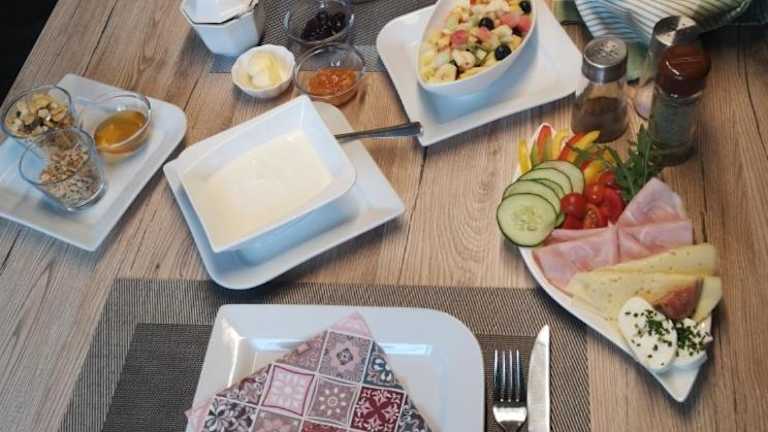 Gäste haben die Möglichkeit, ein vegetarisches Frühstück zu geniessen.
