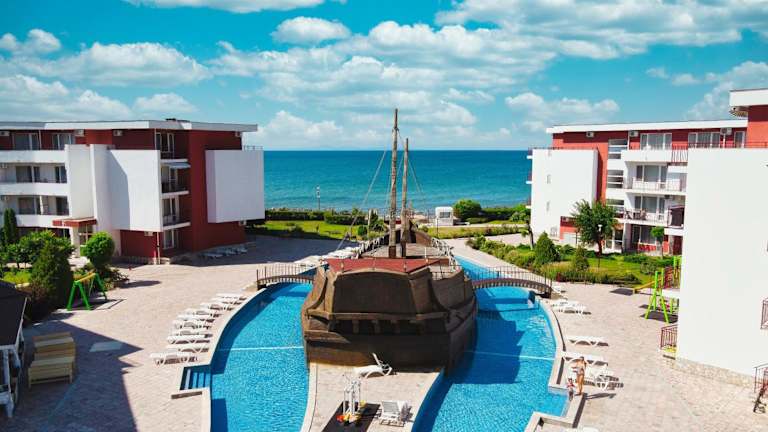 Die Privillege Fort Noks Beach Apartments befinden sich in malerischer Lage am Meer in der Nähe von Elenite, inmitten einer ruhigen Bucht und in der Nähe eines Waldes. Der beliebte Ferienort Sonnenstrand ist nur 9 km entfernt.