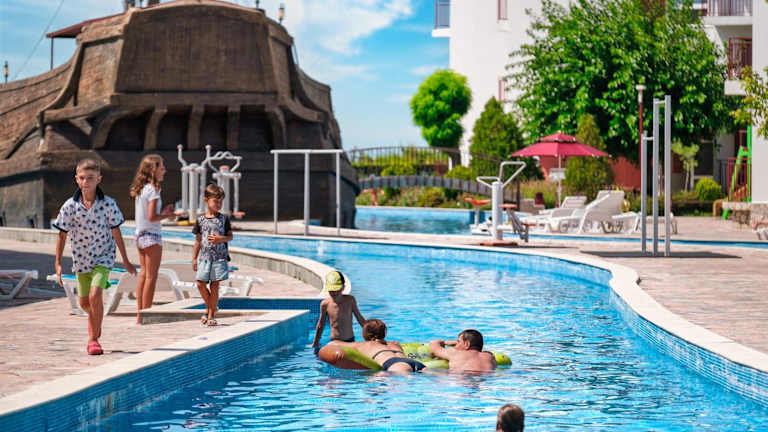 Der Komplex bietet verschiedene Outdoor-Aktivitäten wie einen Tennisplatz, Minigolf, Fussball und Fitnessgeräte im Freien. Zudem sind Bademöglichkeiten am nahen Strand vorhanden.
