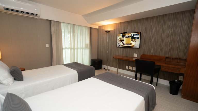 Das Aparthotel befindet sich im eleganten Viertel Leblon in Rio de Janeiro, nur ca. 1 km vom Stadtzentrum und dem Sandstrand entfernt. Das Touristenzentrum Caneco ist ca. 6 km entfernt, und Niteroi liegt etwa 60 km vom Hotel entfernt.