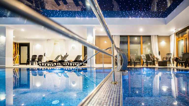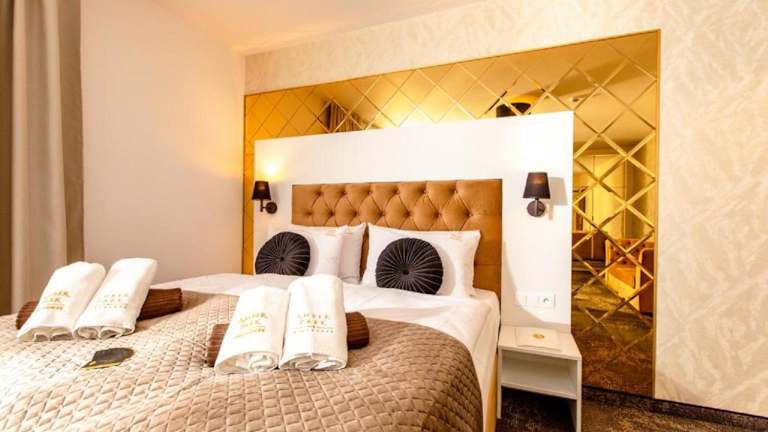 Promocje Amber Park Spa verfügt über Übernachtungsmöglichkeiten mit einem Privatparkplatz, einer Gemeinschaftslounge und einer Terrasse. Zu den Einrichtungen gehören ein Restaurant, ein Kinderclub und Zimmerservice, und die Rezeption ist rund um die Uhr besetzt. Ein türkisches Dampfbad sowie Animateure sorgen für erholsame Momente.