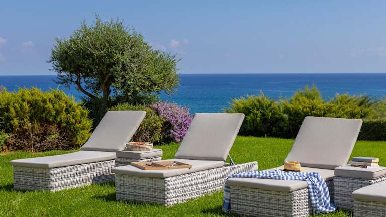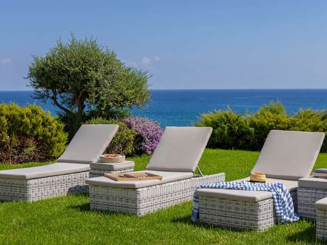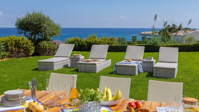 Die Villa bietet 5 Schlafzimmer und 6 Badezimmer sowie Bettwäsche und Handtücher. Zur Ausstattung gehören ein TV mit Satellitenkanälen, eine voll ausgestattete Küche sowie ein Balkon mit Meerblick.