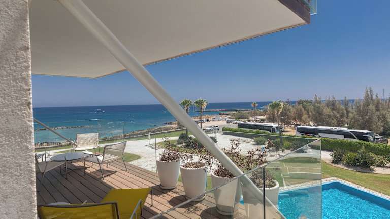 Das Protaras Thalassa Apartment Ta206 überzeugt durch einen herrlichen Poolblick und eine einladende Atmosphäre mit Garten und Balkon. Die Ferienwohnung bietet einen direkten Zugang zum Strand und eignet sich ideal für erholsame Ferien.