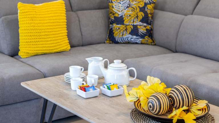 Die Villa verfügt über zwei Schlafzimmer, ein Wohnzimmer sowie eine voll ausgestattete Küche mit Kühlschrank und Wasserkocher. Die Unterkunft bietet ein Badezimmer mit Badewanne oder Dusche und kostenlosen Pflegeprodukten. Handtücher und Bettwäsche werden zur Verfügung gestellt. Die Villa ist klimatisiert und bietet Platz für eine komfortable Aufenthalt.