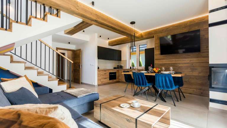 Das Ferienhaus bietet 2 Schlafzimmer sowie ein Wohnzimmer mit Flachbild-TV. Dazu kommt eine voll ausgestattete Küche und 2 Badezimmer, die Bequemlichkeit und Funktionalität für die Gäste sicherstellen.