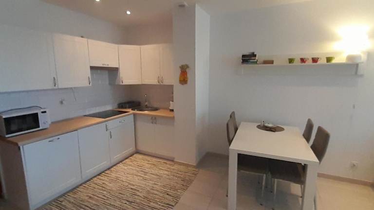 Die Ferienwohnung verfügt über ein Schlafzimmer, ein Wohnzimmer mit Flachbild-TV, eine gut ausgestattete Küche mit Kühlschrank und Mikrowelle, sowie ein Badezimmer mit Dusche. Die Unterkunft bietet Handtücher und Bettwäsche sowie eine Terrasse mit Stadtblick. WLAN ist vorhanden und die Zimmer sind schallisoliert.