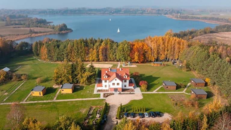 Die Unterkunft Przystań Jeziorany - willa nad jeziorem - Warmia i Mazury befindet sich in Jeziorany, nur 33 km von der Kirche Święta Lipka (Heiligelinde) entfernt. Die Umgebung ist geprägt von der Nähe zum Wasser und bietet einen eigenen Strandbereich. Die Villa liegt in der Nähe von Sehenswürdigkeiten wie Olsztyn Stadium (38 km) und Burg Rößel (29 km). Der Flughafen Olsztyn-Mazury ist 75 km entfernt.