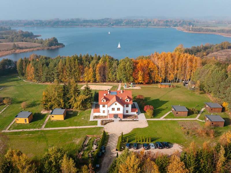 Przystań Jeziorany - willa nad jeziorem - Warmia i Mazury bietet Übernachtungsmöglichkeiten direkt am Strand. Die Unterkunft umfasst neben einem Garten und einer Terrasse auch eine Gemeinschaftslounge, einen kostenlosen Privatparkplatz sowie eine Gemeinschaftsküche. WLAN steht kostenlos zur Verfügung.