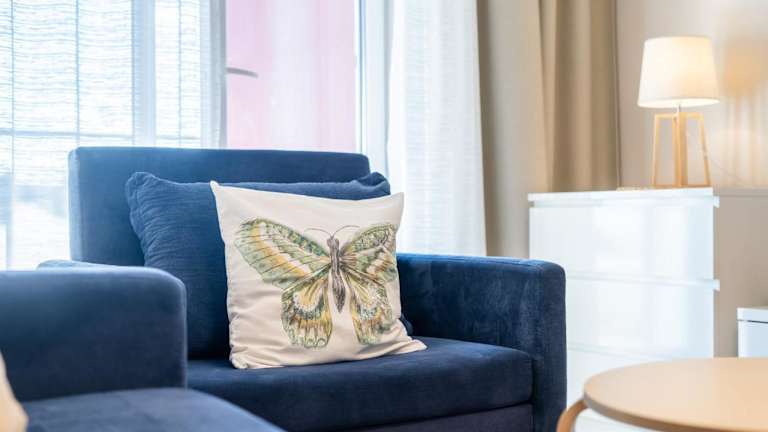 Die Zimmer sind mit einem Flachbild-TV, einem Sitzbereich und einer voll ausgestatteten Küche, die einen Kühlschrank, Geschirrspüler, Ofen, Herdplatte, Kaffeemaschine und Wasserkocher umfasst, eingerichtet. Jedes Zimmer verfügt über ein eigenes Badezimmer mit Dusche und Haartrockner.