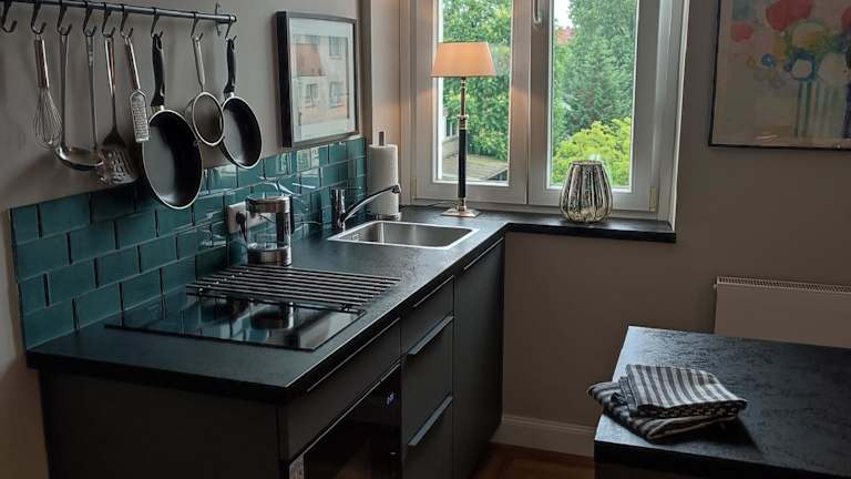 Die Ferienwohnung bietet ein Schlafzimmer sowie eine gut ausgestattete Küche mit Kühlschrank und Mikrowelle. Der Wohnbereich verfügt über einen Flachbild-TV und einen gemütlichen Sitzbereich. Zudem umfasst die Wohnung ein Badezimmer mit Dusche. Handtücher und Bettwäsche werden bereitgestellt.