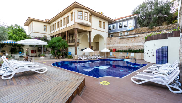 Das Puding Hotel im historischen Stadtteil Kaleici von Antalya bietet eine charmante Unterkunft in 7 historischen Herrenhäusern. Mit einem Außenpool und einer Poolbar können Sie hier eine entspannte Atmosphäre und einen einzigartigen Panoramablick auf die Berge und das Mittelmeer genießen. Die Lage des Hotels in der Nähe des Strandes Mermerli und des alten Yachthafens ist ideal für einen Spaziergang entlang der Küste. Die elegant gestalteten Zimmer sind mit modernen Annehmlichkeiten ausgestattet und bieten kostenfreies WLAN. Das Frühstücksbuffet im Puding Restaurant & Bar bietet einen guten Start in den Tag.