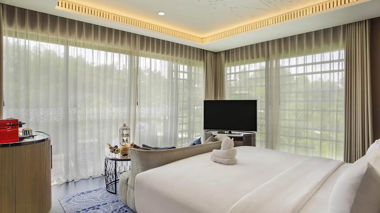 Die Zimmer sind mit einem Kingsize-Bett, einer Klimaanlage, einem Schreibtisch, einer Minibar, einem Safe sowie einem modernen Badezimmer mit Dusche und Badewanne ausgestattet. Zudem verfügen die meisten Zimmer über einen Balkon oder eine Terrasse.