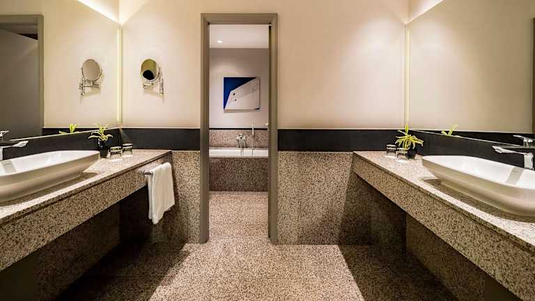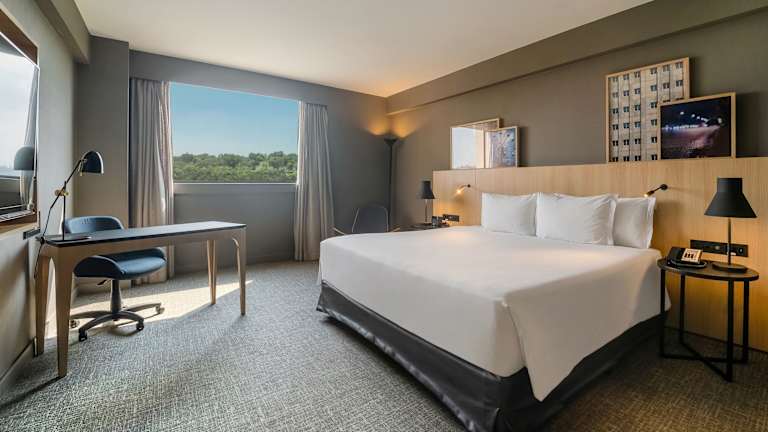 Die Zimmer sind klimatisiert und individuell beheizbar. Sie verfügen über Doppel-, Queensize- oder Kingsize-Betten, sowie über eine Minibar, einen Safe und einen Schreibtisch. Einige Zimmer sind mit einem Minikühlschrank und einer Kaffee-/Teemaschine ausgestattet. Für zusätzlichen Komfort sorgen ein Bügelset, ein Telefon, ein TV-Gerät mit Satelliten- und Kabelempfang sowie kostenfreies Wifi. Die Badezimmer sind mit Dusche und Badewanne ausgestattet und bieten Haartrockner sowie Kosmetikartikel. Es sind auch rollstuhlgerechte Zimmer verfügbar.