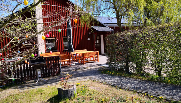Wir sind ein kleines Familienunternehmen. In den letzten beiden Jahren wurden wir vom Landestourismus-Verband Sachsen zum Gästeliebing der Region Vogtland 2023 und 2024 ausgezeichnet und bedanken uns bei all unseren Gästen für so viel Lob und Unterstützung. Pumphut's Scheune heißt Sie mitten im Vogtland am idyllischen Plohnbachtal willkommen! Unsere Ferienwohnungen sind 1998 entstanden und wurden 2021 - 2024 neu gestaltet und renoviert. In ruhiger, zentraler Lage haben Sie Möglichkeiten zur Erholung sowie für verschiedene Freizeitaktivitäten. Tierparks, Talsperren, die Göltztalbrücke, Schlösser, Burgen, Raumfahrt-Museum Morgenröthe-Rauthenkranz, Drachenhöhle Syrau, Erlebnispark Wurzelrudi und noch mehr. Der Freizeitpark Plohn liegt sogar nur 1 km entfernt. Pumphut's Scheune kann einen zentralen Ausgangspunkt für Wanderungen und Ausflüge im Vogtland darstellen, bietet aber auch für gestresste Geschäftsleute erholsame Stunden und Ausgleich vom Geschäftsalltag. Für Abkühlung ist im Sommer mit unserem Swimmingpool gesorgt - und im kalten Winter wartet eine heiße Sauna auf Sie. Bettwäsche und Handtücher/Person, Parkplatz, WLAN, Pool, Spielplatz und Grill sind im Preis inkl.. Für Familientreffen, gemeinsame Mahlzeiten, Geburtstagsfeiern oder ähnliche Veranstaltungen bieten wir Ihnen unsere Stube mit integrierter Küchenzeile, Kühlschrank, Geschirrspüler, Herd, Backofen sowie komplett ausgestattet mit Geschirr u.a. an. Diese berechnen wir separat mit einer einmaligen Gebühr von 40,- Euro (Reinigungs-/Nutzungsgebühr). Hunde sind in unseren Ferienwohnungen Nr. 5, 6, 7 und 8 erlaubt. Diese immer mit Voranmeldung. Wir berechen je Hund/Nacht 5,- Euro und eine einmalige Endreinigung von 30,- Euro. Stornobedingungen: Bis 14.00 Uhr am Tag der Anreise können Gäste kostenlos stornieren. Der Gast zahlt im Falle einer Stornierung nach 14.00 Uhr einen Betrag in Höhe der ersten Nacht. Unsere Ferienwohnungen sind nach den Qualitätskriterien der DTV-Klassifizierung mit 3 bzw. 4 Sternen ausgezeichnet. Die aktuelle Klassifizierung gilt bis Dezember 2025. Als Ausflugsziele zu Fuß oder mit unseren kostenlos auszuleihenden Fahrrädern warten in der näheren Umgebung der Freizeitpark Plohn in nur 1,5 km, das Planetarium oder die Schlossinsel der Stadt Rodewisch, der Steinberg und auch die Wernesgrüner Brauerei. Etwas weiter kann die Göltzschtalbrücke besichtigt werden, bei schönem Wetter lädt die Talsperre Pöhl zu einem Bade ein. Auch Eibenstock mit seiner Talsperre und den Badegärten ist nur wenige Kilometer entfernt, das Erzgebirge liegt vor der Tür und ein Tagesausflug in die Tschechische Republik lohnt sich bestimmt. Die Schlösser in Greiz oder das versteckte, aber durchaus sehenswerte Stadtmuseum in Lengenfeld sind bestimmt auch einen Besuch wert, wenn man an der (über-) regionalen Geschichte interessiert ist. Haben Sie schon einmal zugesehen, wie eine Geige entsteht? Eine solche Gelegenheit bietet sich im Musikwinkel in Klingenthal... Und wenn Sie noch mehr vom Vogtland erfahren wollen - Sprechen Sie uns bitte einfach an! Wir freuen uns auf Sie! Gesprochene Sprachen: Englisch, Deutsch