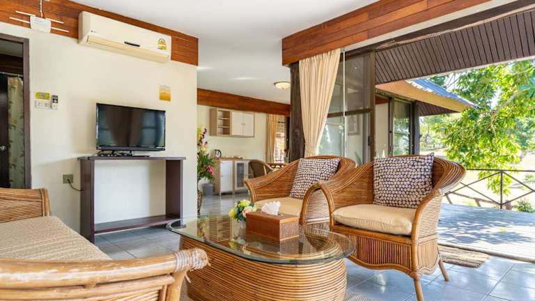 Das Restaurant Rebieng mit Holzbalkon und Blick auf die üppige Vegetation serviert von 07:00 bis 21:00 Uhr thailändische Küche. In der Lobbybar können Sie nach dem Abendessen Getränke geniessen. Zudem gibt es multifunktionale Banketträume im Innen- und Aussenbereich für Feierlichkeiten mit Freunden und Familie.