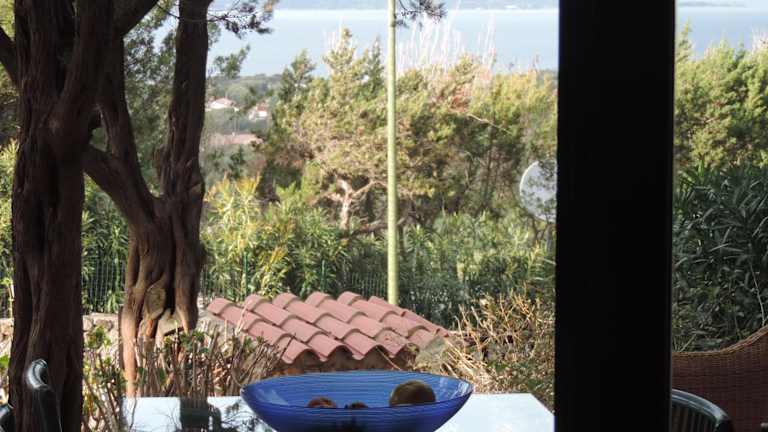 Die Ferienwohnung umfasst zwei Schlafzimmer mit Zugang zu einer Terrasse und bietet eine Aussicht auf Meer und Garten. Zudem sind die Zimmer mit Klimaanlage, Flachbild-TV sowie einer voll ausgestatteten Küche versehen. Ein Sitzbereich, eine Waschmaschine und ein Badezimmer mit Bidet und Dusche sind ebenfalls vorhanden.