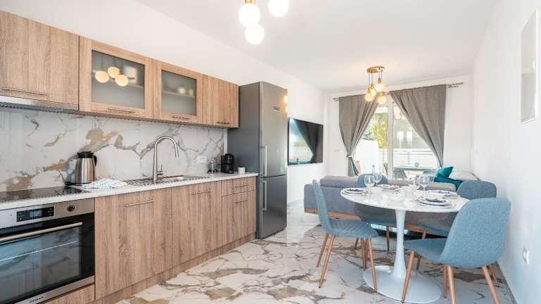 Die Villa besteht aus einem Schlafzimmer, einem Wohnzimmer und einer voll ausgestatteten Küche mit Kühlschrank und Kaffeemaschine. Zudem gibt es ein Badezimmer mit Dusche und kostenlosen Pflegeprodukten. Handtücher und Bettwäsche werden bereitgestellt. Die Villa ist klimatisiert und sorgt für eine angenehme Bequemlichkeit.