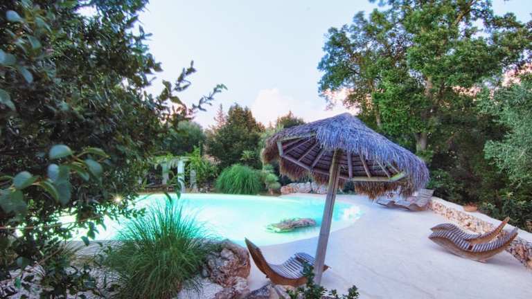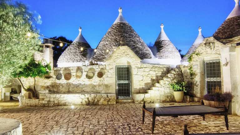 Das Puntebianche B&B bietet traditionelle Trulli-Steinhäuser, die mit Klimaanlage ausgestattet sind. Zu den Annehmlichkeiten gehören ein Freiform-Pool und ein Whirlpool, umgeben von Olivenbäumen, sowie ein Türkisches Bad. Die Unterkunft verfügt über liebevoll gestaltete Gärten und tierische Begleiter wie Esel, Hunde und Katzen.