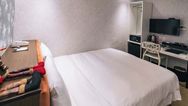 Die Zimmer sind mit Klimaanlage, Teppichböden, einem Doppelbett sowie einem Safe ausgestattet. Zur weiteren Ausstattung gehören eine Minibar, ein Kühlschrank, eine Mikrowelle, ein Schreibtisch und eine Tee-/Kaffeemaschine. Hausschuhe sind ebenfalls vorhanden. Im Badezimmer stehen eine Dusche und eine Badewanne, Kosmetikartikel sowie ein Haartrockner zur Verfügung. Familien- und Nichtraucherzimmer sind verfügbar.