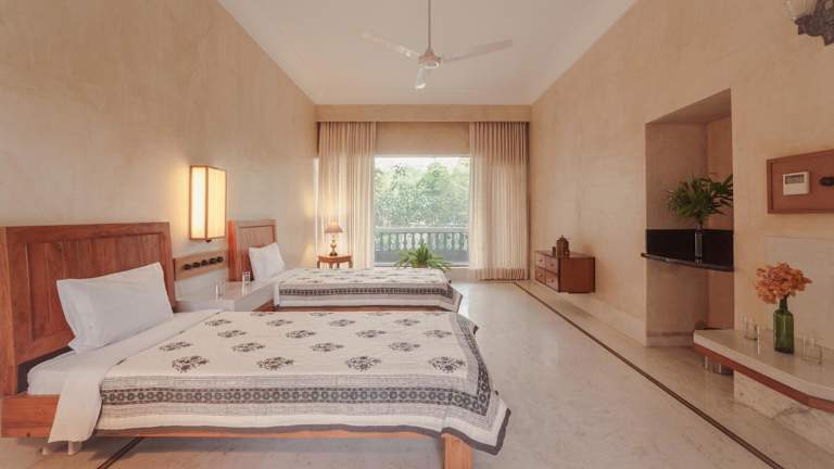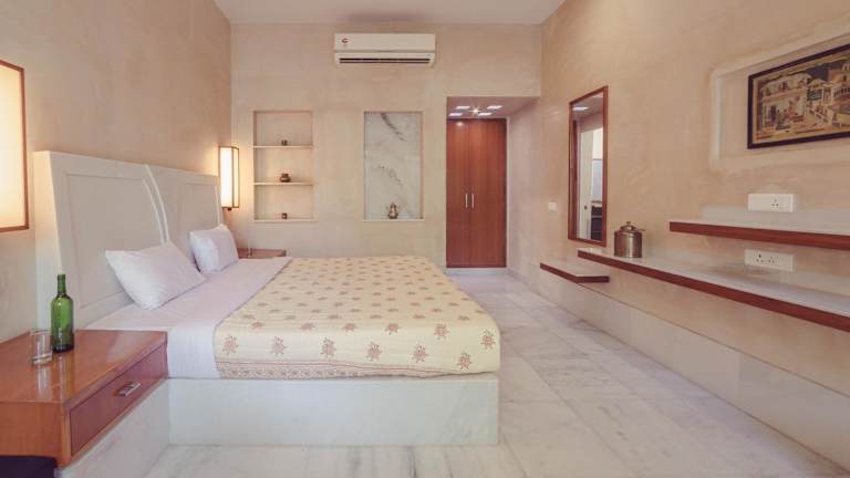 Die Zimmer in der Unterkunft PushkarOrganic - Lux farm resort with pool sind mit einer Veranda oder Terrasse mit Gartenblick ausgestattet. Jedes Zimmer bietet ein eigenes Badezimmer mit Haartrockner. Einige Zimmer haben zudem einen Balkon, während andere einen schönen Bergblick bieten.