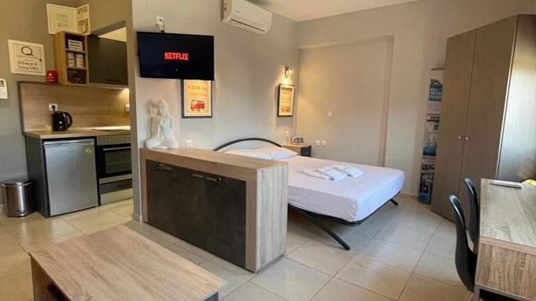 Q luxury rooms Perea center ist eine heimelige Ferienwohnung, die in einem Gebäude aus dem Jahr 2009 untergebracht ist. Die Unterkunft bietet eine moderne Ausstattung, darunter kostenfreies Wifi und Stadtblick.