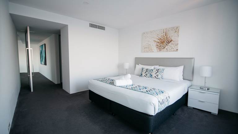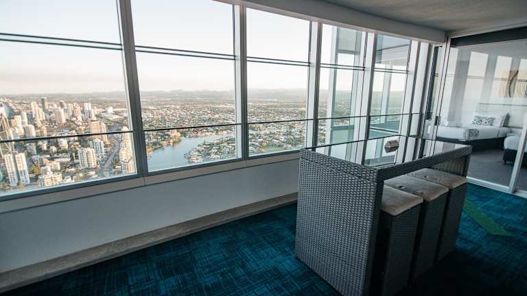Die 647 geräumigen Zimmer des Q1 Resort & Spa bieten den Gästen allen Komfort, den sie sich wünschen. Jede Ferienwohnung verfügt über eine voll ausgestattete Küche mit Backofen, Kochfeld und Kühlschrank. Zur weiteren Ausstattung gehören Wäschemöglichkeiten, Kabel-TV, ein eigenes Bad mit Whirlpool-Badewanne sowie kostenloses WLAN. Einige Unterkünfte bieten zudem einen Balkon oder Meerblick. Das luxuriöse Presidential-Penthouse erstreckt sich über eine ganze Etage und bietet einen atemberaubenden Blick auf den Pazifik und die Gold Coast. Es verfügt über einen eigenen Pool, zwei Dachterrassen, eine Sauna und ein privates Theater.