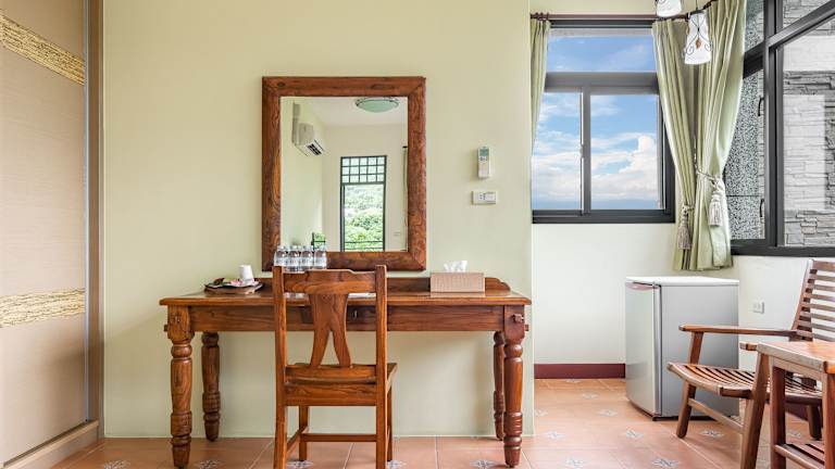 Die Zimmer im Qian B&B (Taroko) sind komfortabel und gemütlich eingerichtet. Jedes Zimmer verfügt über einen Flachbild-TV, eine Klimaanlage, einen Balkon und einen Kühlschrank. Das private Badezimmer ist mit einer Dusche, einem Haartrockner und kostenfreien Pflegeprodukten ausgestattet. Genießen Sie den herrlichen Blick auf die Berge und entspannen Sie im gemütlichen Sitzbereich.
