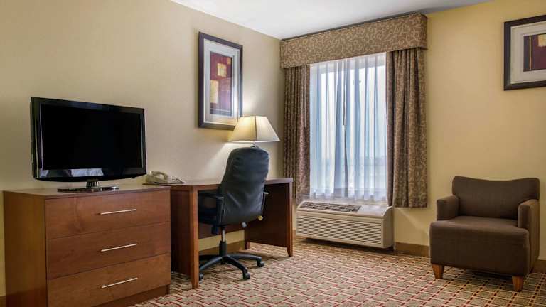 Die Zimmer sind mit einem Schreibtisch, einem Sitzbereich sowie einem TV mit Satellitenkanälen ausgestattet. Es gibt Nichtraucherzimmer, die eine angenehme Bequemlichkeit bieten. Zusätzliche Einrichtungen sind Behindertengerechte Parkplätze, Rollstuhlgerechtigkeit und spezielle Bedürfnisse wie niedrige Waschbecken im Bad und WC mit Haltegriffen.