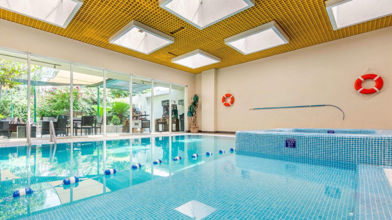 Die Freizeitmöglichkeiten umfassen einen beheizbaren Innen- und Aussenpool sowie einen Kinderpool. Der Whirlpool im Wellnessbereich sorgt für Entspannung. Sportlich aktive Gäste können Tennis spielen, im Fitnessraum trainieren oder Aerobic machen. Gegen Gebühr werden Golfkurse angeboten.